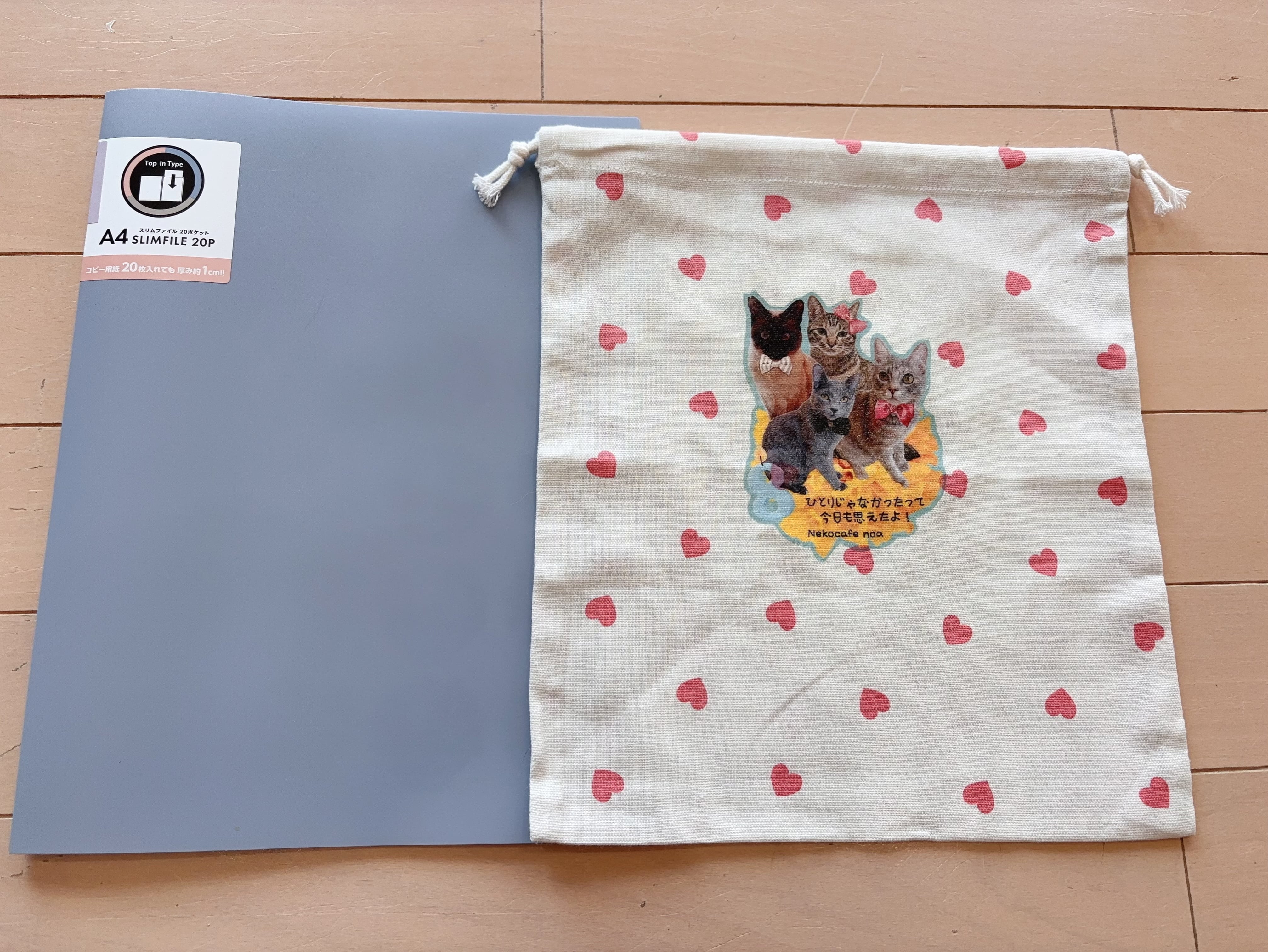こちらの巾着は、A4サイズより一回り小さいサイズです。